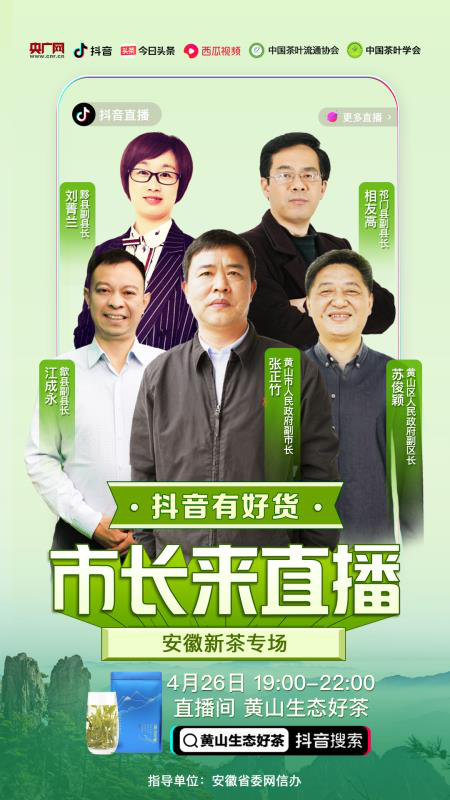 央廣網(wǎng)合肥4月24日消息(記者 張宣劍)當(dāng)前,安徽各地正值春茶上市銷售的黃金期。為充分運用銷售直播手段,幫助茶農(nóng)迅速打開銷路,解決農(nóng)產(chǎn)品賣難問題,讓好產(chǎn)品賣出好價格,讓網(wǎng)民買到好產(chǎn)品,讓更多安徽特色優(yōu)質(zhì)農(nóng)產(chǎn)品乘上數(shù)字經(jīng)濟、新型消費的“快車道”,安徽省委網(wǎng)信辦將聯(lián)合抖音、央廣網(wǎng)等平臺,在安徽茶葉主產(chǎn)區(qū)——六安、黃山、宣城市,舉辦茶葉專場網(wǎng)上銷售直播活動,以直播帶貨方式,向網(wǎng)民推介安徽特色好茶。