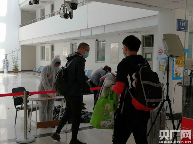 西安電子科技大學(xué)返校學(xué)生通過測溫進(jìn)入宿舍樓(央廣網(wǎng)記者 雷愷 攝)