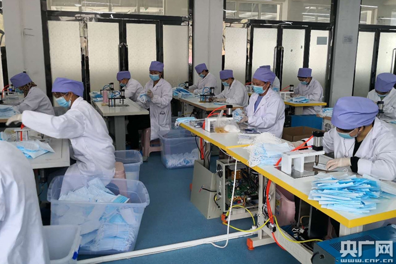 生產(chǎn)口罩的扶貧車(chē)間(央廣網(wǎng)記者 廉軍 攝)