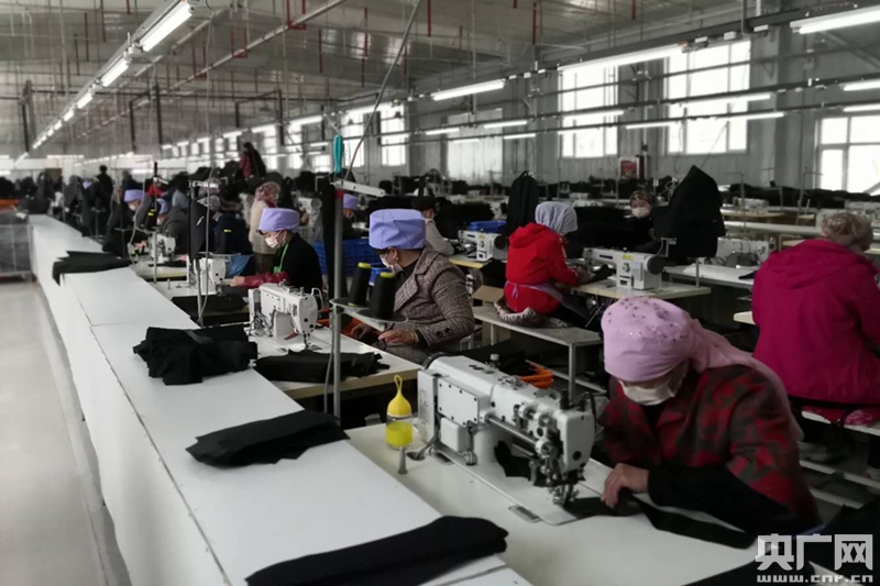 服裝加工扶貧車(chē)間(央廣網(wǎng)記者 廉軍 攝)