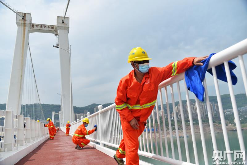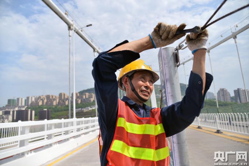 工人對(duì)橋梁進(jìn)行維護(hù)(央廣網(wǎng)發(fā) 通訊員供圖)