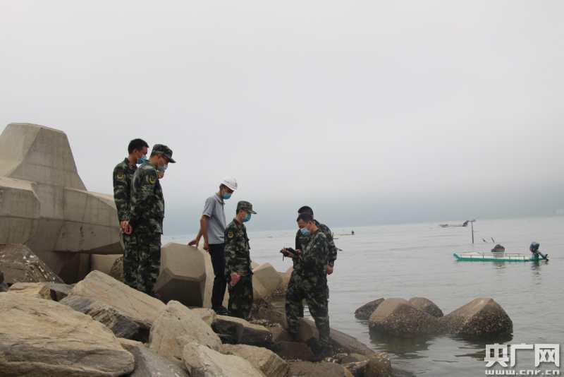 聯(lián)合調(diào)查組委托具有相關(guān)資質(zhì)的勘察單位進(jìn)行實(shí)地勘察及測量(央廣網(wǎng)發(fā) 廣東海警局供圖)