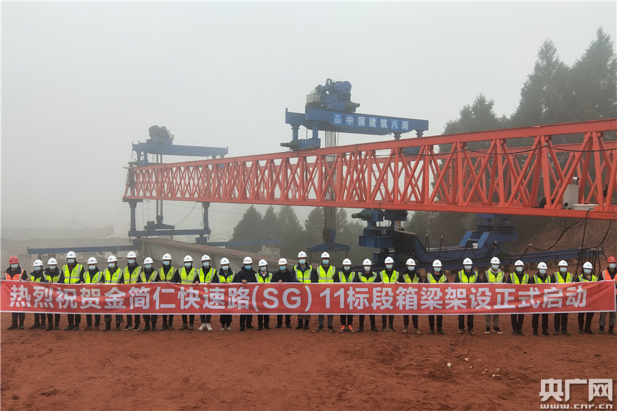 央廣網成都12月8日消息(記者賈宜超)12月8日上午,成都金簡仁快速路(二期)(金堂大道至機場南線)SG11標首榀箱梁成功架設,這也標志著中建八局制梁場正式進入架梁階段,形成制梁及架梁雙軌式施工作業(yè)。