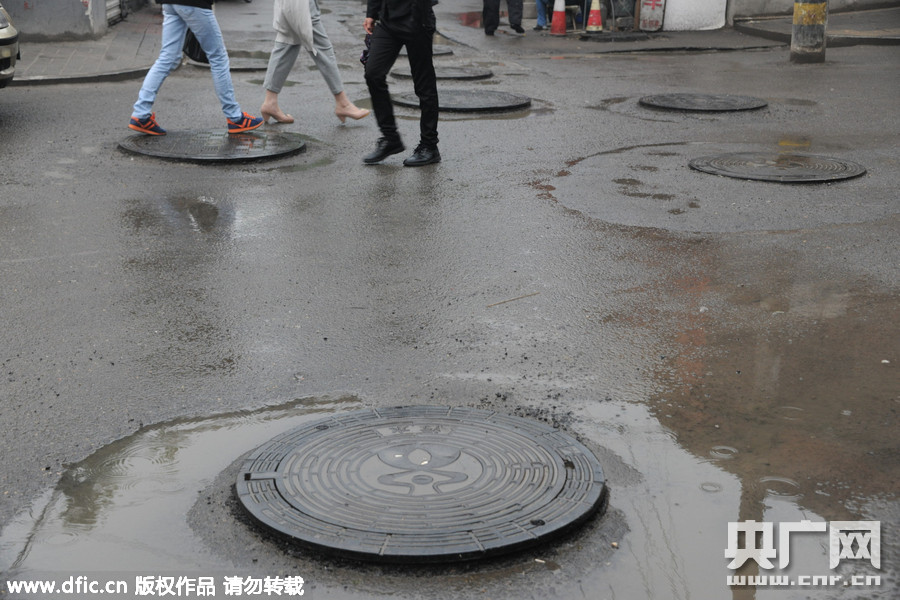 2015年4月28日,山東濟(jì)南,在濟(jì)南歷下區(qū)縣東巷中段,數(shù)十井蓋被拔高,由于密集排在路上,放學(xué)回家的家長騎車帶著孩子途徑此路,都要拐來拐去躲避障礙,如同考駕!奥房肌薄R晃患议L稱,此路附近有兩所學(xué)校,每天有數(shù)百學(xué)生要途徑此路上學(xué),雖然天氣暖和后,到了路面和橋面修缺補(bǔ)坑的時(shí)候,但放學(xué)路上存在安全隱患。