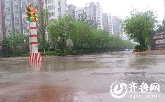 濟(jì)南魯能領(lǐng)秀城小區(qū)內(nèi)道路已見積水(記者黃鵬偉攝)