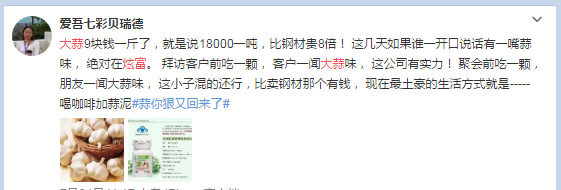 關(guān)鍵詞:大蒜;蒜你狠;炫富