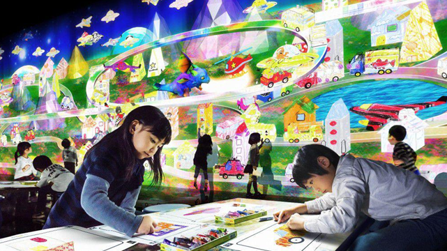 。ㄕ钩鲰(xiàng)目之一:彩繪城鎮(zhèn)Sketch Town 作者:teamLab)