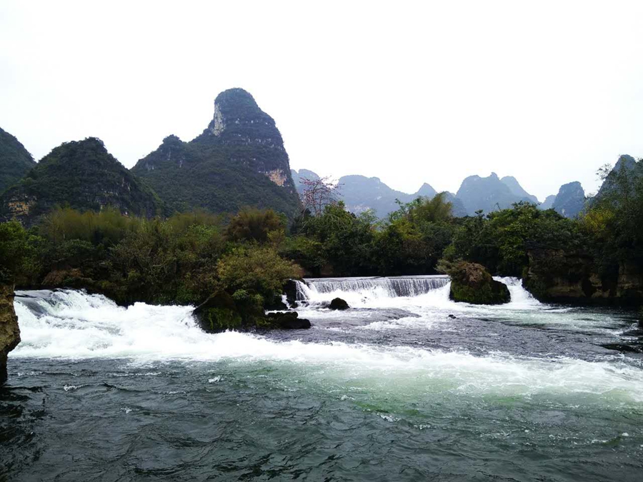 河兩岸群山綿延,奇峰聳峙,青竹秀水,景色秀美。 -