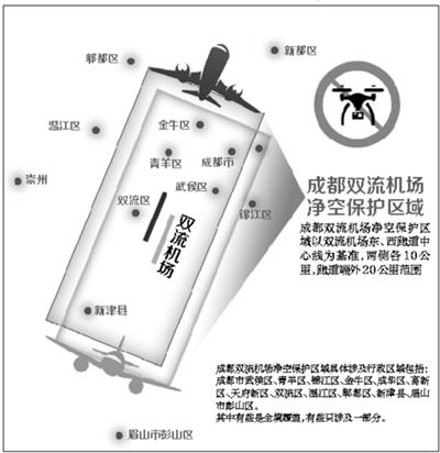 民航空中管制部門工作人員告訴北青報記者,成都雙流機場凈空保護區(qū)域是以成都雙流國際機場東、西跑道中心線為基準,兩側(cè)各10公里,跑道端外20公里的范圍來劃定的。具體包括下列行政區(qū)域:成都市武侯區(qū)、青羊區(qū)、錦江區(qū)、金牛區(qū)、成華區(qū)、高新區(qū)、天府新區(qū)、雙流區(qū)、溫江區(qū)、郫縣、新津縣、眉山市彭山區(qū)。