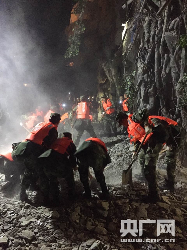武警四川總隊阿壩支隊官兵已經(jīng)到達現(xiàn)場展開救援。