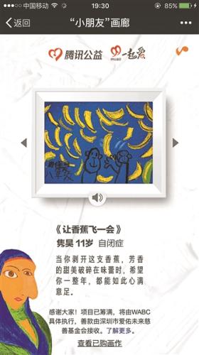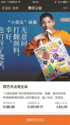 昨日早上,微信朋友圈被“騰訊公益創(chuàng)意項目小朋友畫廊活動”刷屏,微信用戶只需要通過騰訊公益平臺公眾號支付一元錢,“捐贈一塊錢就可以買一幅自閉癥、智力障礙人群的畫作。”短短幾個小時,共有580萬網(wǎng)友參加捐款,募得資金1500萬。
