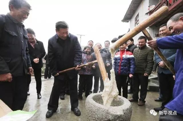 2016年2月,習近平總書記在井岡山市茅坪鄉(xiāng)神山村同村民一起打糍粑。他指出,扶貧、脫貧的措施和工作一定要精準,要因戶施策、因人施策,扶到點上、扶到根上。新華社記者蘭紅光攝