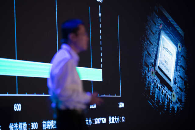 5月3日,在上海國際會議中心舉行的發(fā)布會上,寒武紀(jì)科技公司首席執(zhí)行官陳天石介紹新發(fā)布的國內(nèi)首款云端人工智能芯片。新華社記者 金立旺 攝