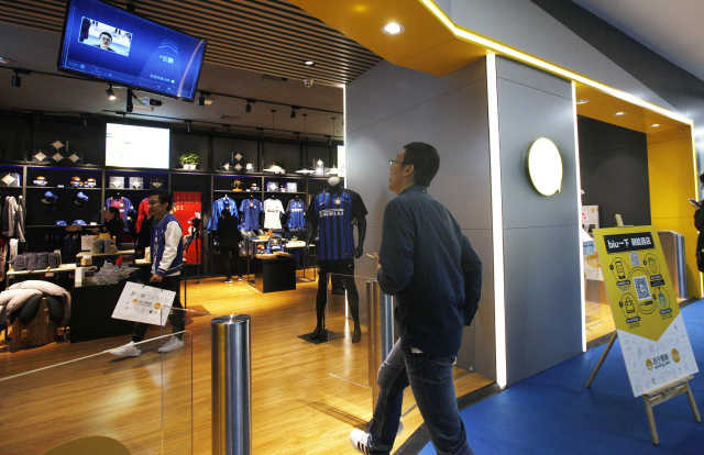 上海一名消費(fèi)者通過面部識別進(jìn)入位于楊浦區(qū)的“無人店”(2017年11月6日攝)。新華社記者 方喆 攝