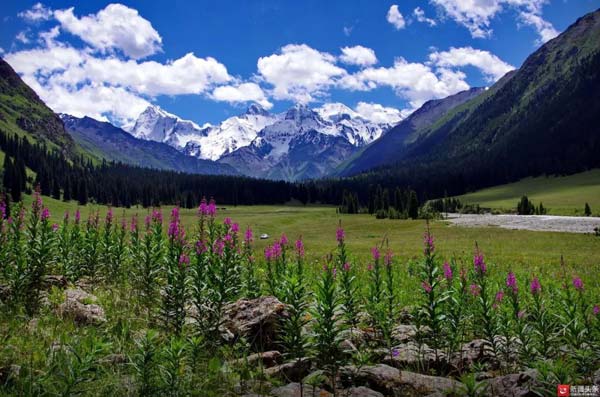 除了新地鄉(xiāng)自身風(fēng)景宜人外,距離新地鄉(xiāng)約10公里的花兒溝景區(qū)也美如仙境,是新疆著名的高山草甸之一,尤其在每年6月至8月,藏于天山深處的花兒溝漫山遍野的鮮花更是爭奇斗艷。