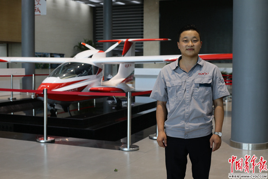 上海浦東臨港科技城,某航空公司副總王仕國在完全具有自主知識(shí)產(chǎn)權(quán)的國產(chǎn)水陸兩棲小飛機(jī)前。