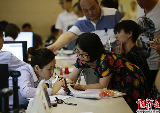 8月28日,上海浦東企業(yè)服務(wù)中心,工作人員為前來辦理業(yè)務(wù)的女士解答疑問。該企業(yè)服務(wù)中心能實(shí)現(xiàn)區(qū)級(jí)327項(xiàng)企業(yè)辦事事項(xiàng)全覆蓋。