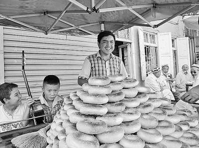 喀什老城區(qū)里正在賣馕的小伙子 光明日報記者 王瑟攝/光明圖片