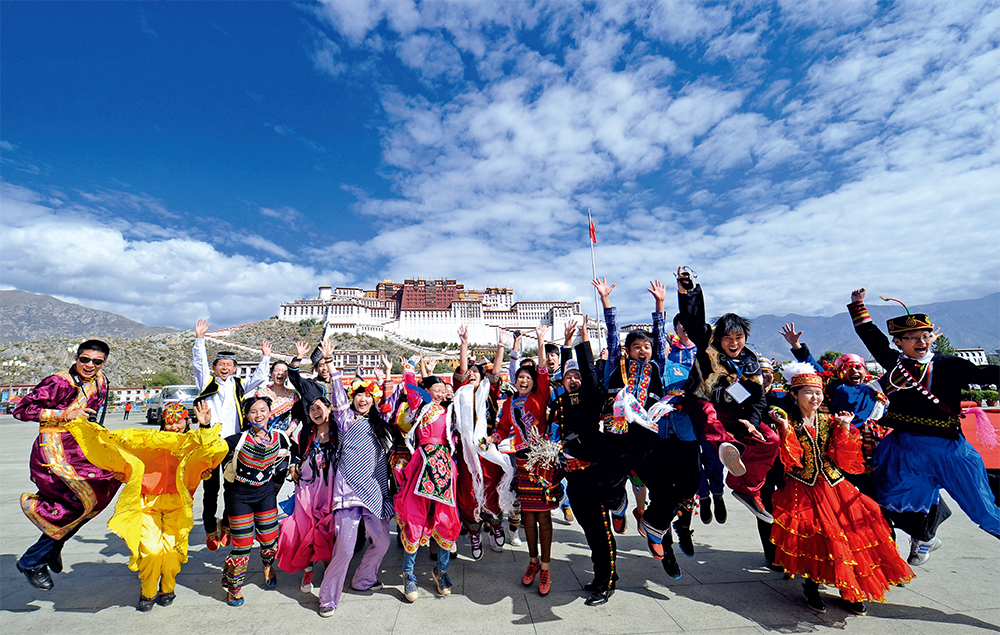 2012年9月27日,各族青年在布達拉宮廣場歡呼合影 覺果攝