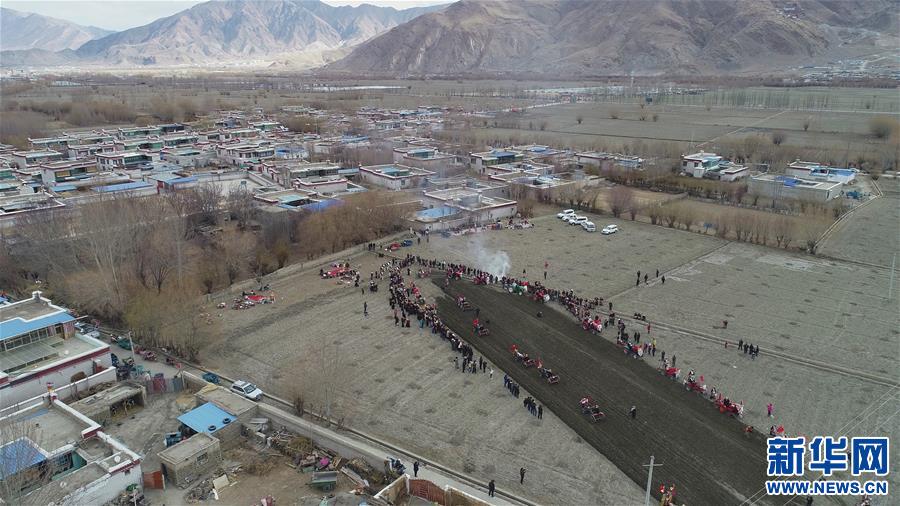 3月16日,山南市乃東區(qū)克松社區(qū)居民在開耕儀式上。新華社記者 李鑫 攝