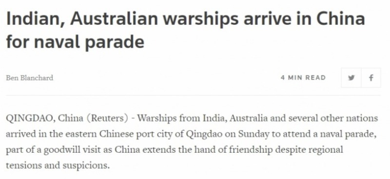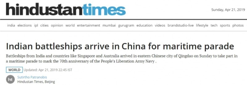 印度駐華使館稱,印度軍艦參加中國人民解放軍海軍閱兵式,是深化印中兩軍關(guān)系的努力之一,符合兩國領(lǐng)導(dǎo)人的戰(zhàn)略指導(dǎo)。預(yù)計本次活動將進一步推進兩軍增進互信和理解的進程。