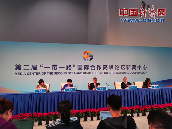 圖為第二屆“一帶一路”國(guó)際合作高峰論壇企業(yè)家大會(huì)新聞發(fā)布會(huì)現(xiàn)場(chǎng)。經(jīng)濟(jì)日?qǐng)?bào)-中國(guó)經(jīng)濟(jì)網(wǎng)記者 張懿攝