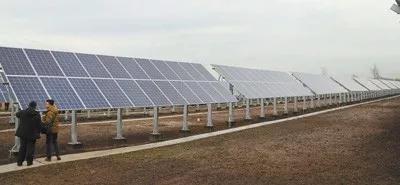 △中國援建的哈薩克斯坦太陽能及風(fēng)能電站投入使用,圖為太陽能電站一角。