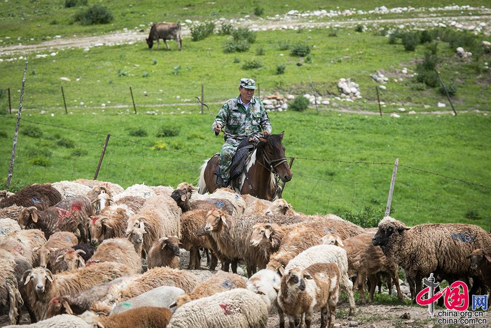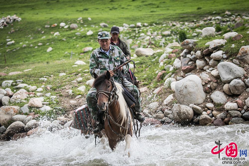 然而,去往“冬窩子”的路并不容易,途中要翻越海拔近4000米的冰大坂。冰大坂上有厚厚的冰層,終年積雪不化;沒有路標(biāo)行進(jìn)艱難,一次轉(zhuǎn)場(chǎng)時(shí)間最長(zhǎng)要一周,還要隨時(shí)面臨狂風(fēng)、雪崩的威脅。由于戰(zhàn)線長(zhǎng)、路途險(xiǎn),團(tuán)場(chǎng)在“冬窩子”必經(jīng)之路上設(shè)立一些牧點(diǎn),他們稱之為“點(diǎn)家”,為往來牧民和牲畜提供接待、暫住并保護(hù)草場(chǎng)。哈薩克族黨員努爾江·吾任太的家就是“點(diǎn)家”之一,他的家在團(tuán)部以南60公里、海拔2300多米大山深處的阿尕西庫(kù)拉,被過往牧民稱為高山牧道上補(bǔ)充給養(yǎng)的“兵站”,努爾江就是“兵站”里的“保護(hù)神”。中國(guó)網(wǎng)記者 倫曉璇 攝