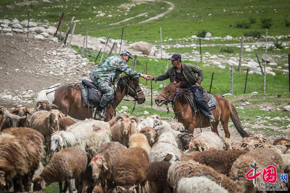 提到為何加入中國(guó)共產(chǎn)黨,努爾江說,是受了轉(zhuǎn)場(chǎng)途中認(rèn)識(shí)的老黨員的影響!澳撩褶D(zhuǎn)場(chǎng)途中認(rèn)識(shí)了很多老黨員,他們始終沖在隊(duì)伍最前面,我看在眼里。要知道最前面負(fù)責(zé)開路的是最困難的,時(shí)刻面臨危險(xiǎn),一般人都不愿意做。但這些有黨員身份的人始終走在最前頭,不喊累,不怨天尤人!迸瑺柦f,“我開始向這些老黨員學(xué)習(xí),慢慢意識(shí)到我也要加入中國(guó)共產(chǎn)黨,我也要像他們一樣更好地服務(wù)群眾!背蔀辄h員前,努爾江出于良心服務(wù)群眾;成為黨員后,為轉(zhuǎn)場(chǎng)牧工和老百姓服務(wù)的意識(shí)更強(qiáng),這也成為了努爾江肩上的責(zé)任和初心。中國(guó)網(wǎng)記者 倫曉璇 攝