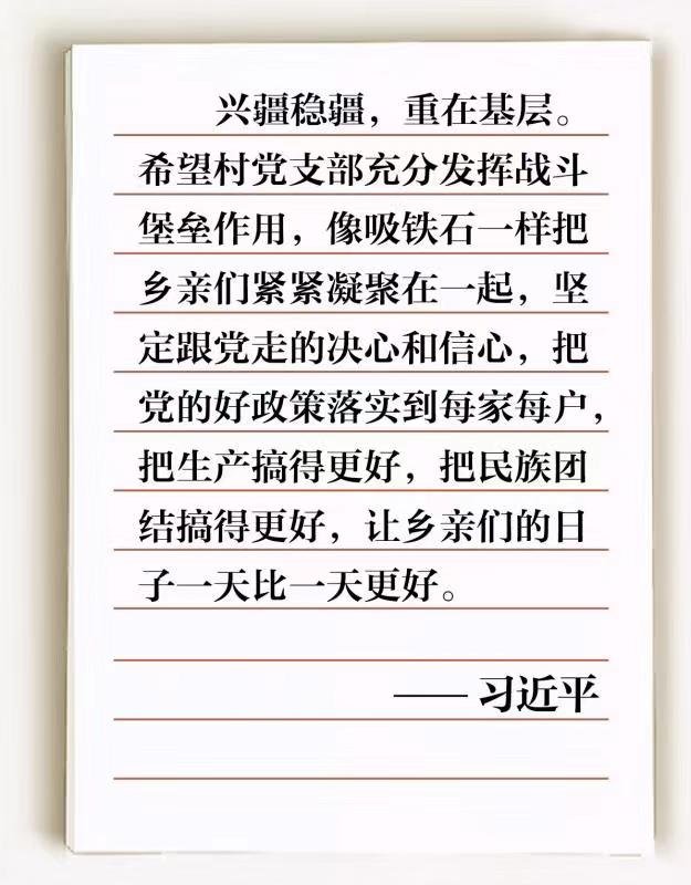 2009年6月,時(shí)任中共中央政治局常委、中央書(shū)記處書(shū)記、國(guó)家副主席的習(xí)近平來(lái)到達(dá)西村考察基層黨建工作。2014年4月,習(xí)近平總書(shū)記在新疆考察時(shí)講到了達(dá)西村的村訓(xùn)——“口袋里要鼓囊囊,精神上要亮堂堂”。消息傳來(lái),村民們懷著激動(dòng)的心情給總書(shū)記寫(xiě)信,匯報(bào)5年間村里的變化。2014年9月,習(xí)近平總書(shū)記給沙吾爾·芒力克和全體村民回信,強(qiáng)調(diào)興疆穩(wěn)疆,重在基層。