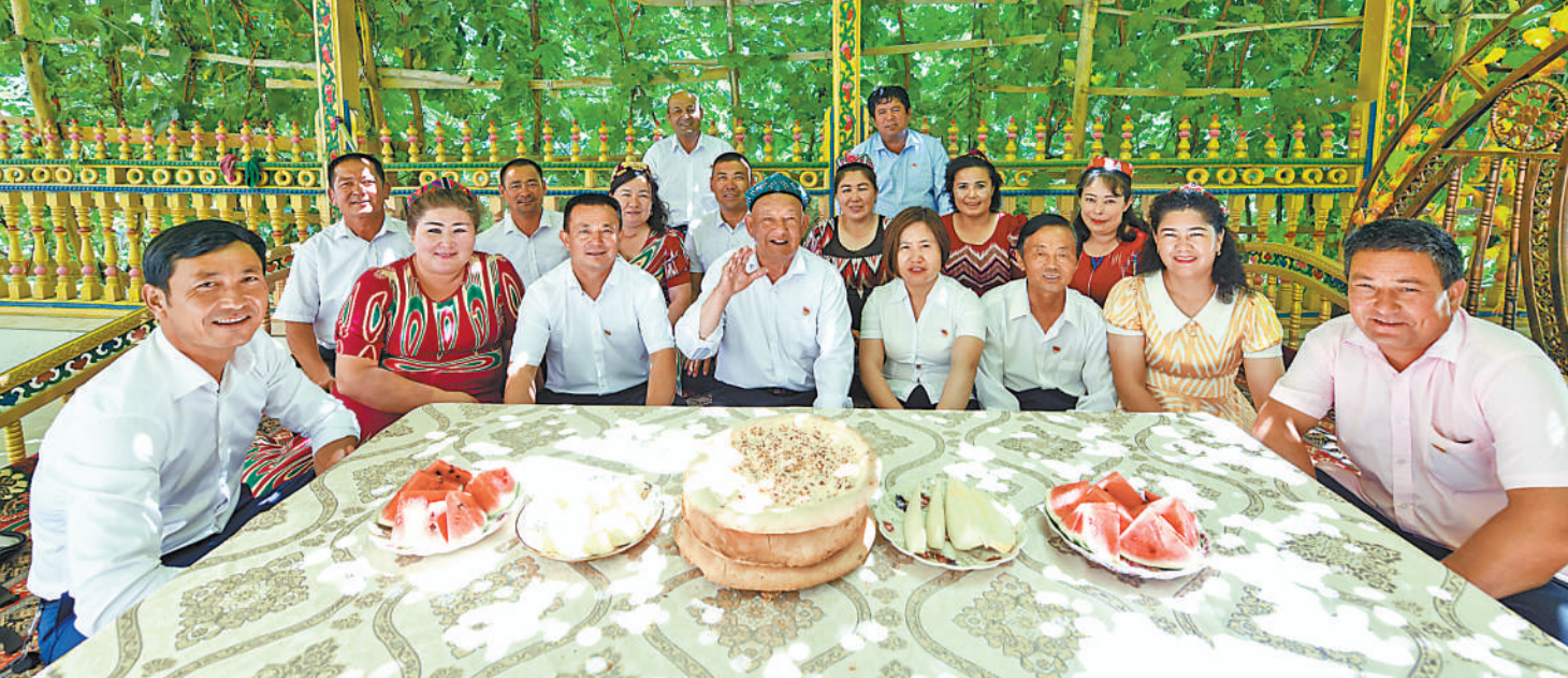 “10年前習(xí)近平同志就叮囑我們,加強(qiáng)民族團(tuán)結(jié)是實(shí)現(xiàn)新疆長(zhǎng)治久安的根本之策!鄙澄釥枴っ⒘烁嬖V記者。2010年起,達(dá)西村在全疆率先開(kāi)展民族團(tuán)結(jié)結(jié)對(duì)認(rèn)親活動(dòng),目前全村150多戶漢族群眾與400余戶維吾爾族群眾相互間結(jié)成“親戚”318對(duì)。艾沙·吾守爾老人一家和郭宗俊正式結(jié)了對(duì),“這個(gè)漢族兒子,亞克西!”
