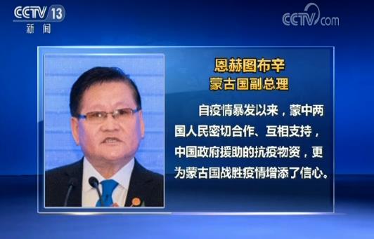 蒙古國(guó)副總理恩赫?qǐng)D布辛表示,自疫情暴發(fā)以來(lái),蒙中兩國(guó)人民密切合作、互相支持,中國(guó)政府援助的抗疫物資,更為蒙古國(guó)戰(zhàn)勝疫情增添了信心。