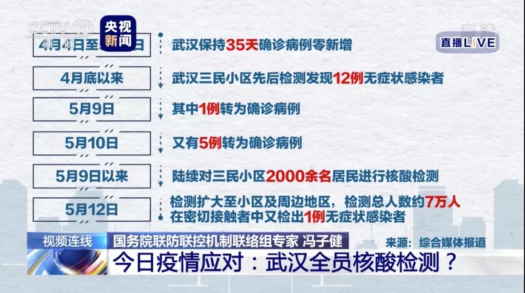 1.武漢進(jìn)行全員核酸檢測(cè),聯(lián)絡(luò)組對(duì)此有何評(píng)估?馮子。3月8日,武漢實(shí)現(xiàn)確診病例零新增后,醫(yī)療機(jī)構(gòu)一直在擴(kuò)大核酸檢測(cè)的范圍。這段時(shí)間以來,每天都有呈陽性的檢測(cè)者,他們是無癥狀感染者。近期,武漢又發(fā)生了一起聚集性疫情,這表明武漢前期的病毒傳播并沒有被完全阻斷。武漢市采取全員核酸檢測(cè)的措施是積極的行動(dòng),對(duì)社會(huì)動(dòng)員力度非常大。