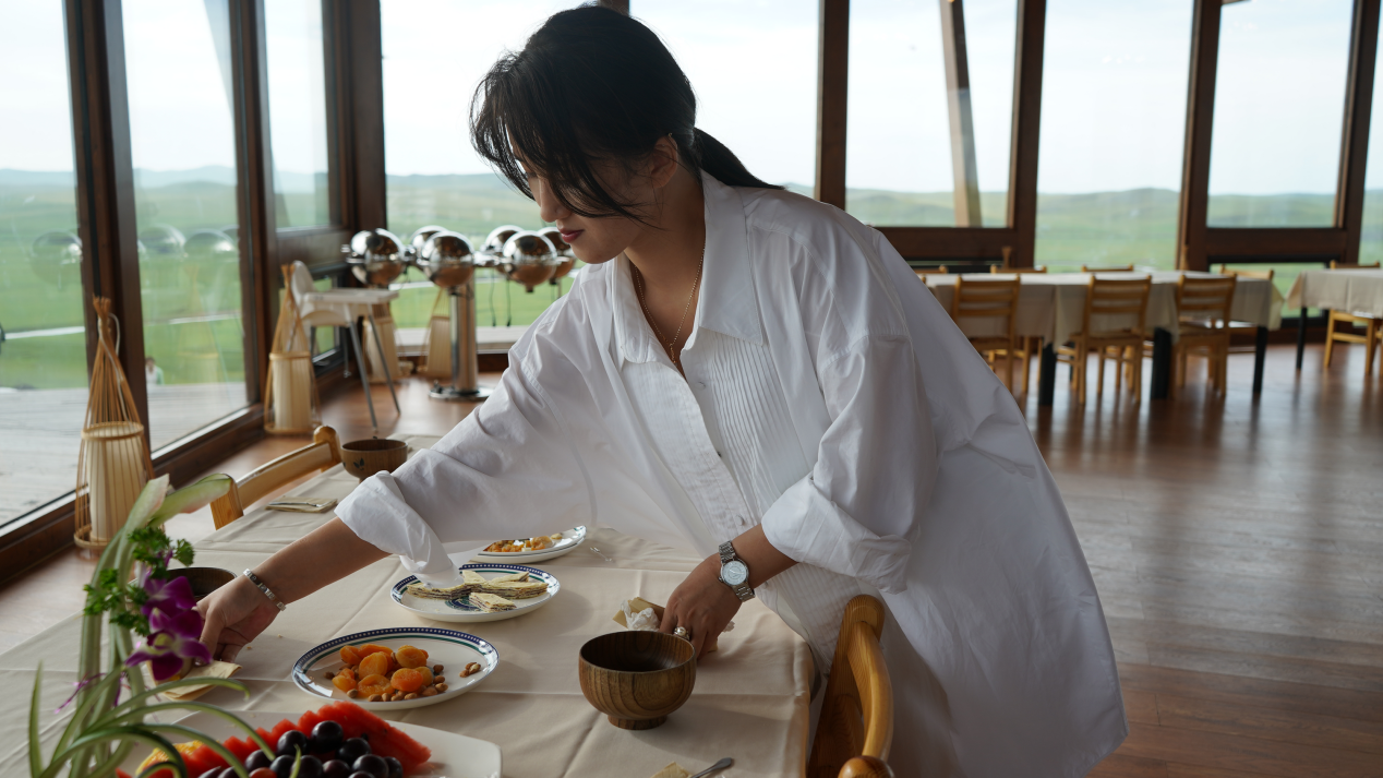 兩年前,杜蓉蓉為了照顧父親,辭掉工作回到老家,在有著“天下第一曲水”之稱的莫日格勒河畔,承包了山頂?shù)囊黄輬霭l(fā)展民宿。她常說自己當(dāng)初“除了膽大啥也不會”,而如今,在她和小伙伴們的不斷摸索下,經(jīng)營逐步走上正軌。