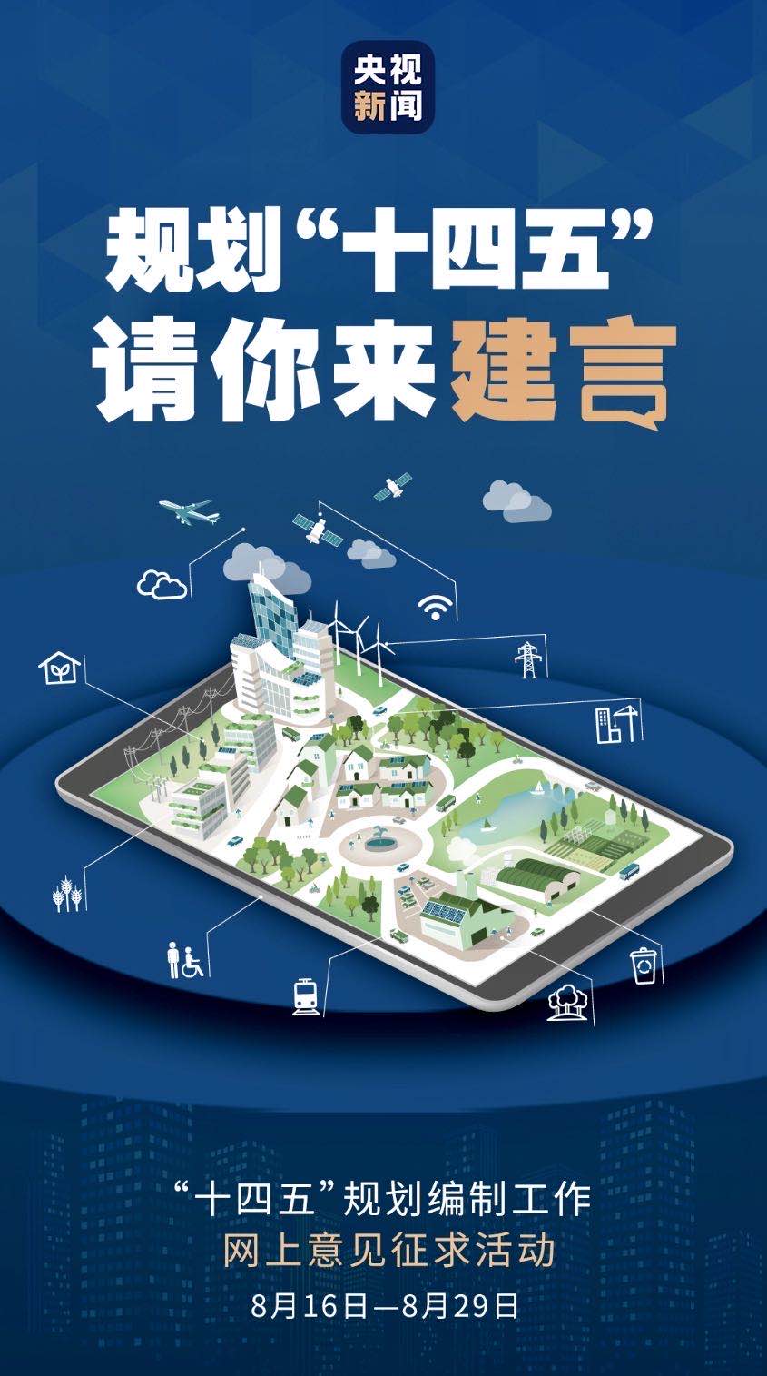 明年,我國(guó)開(kāi)始實(shí)施“十四五”規(guī)劃。前不久,總書(shū)記對(duì)“十四五”規(guī)劃編制工作作出重要指示,要求開(kāi)門(mén)問(wèn)策、集思廣益,切實(shí)把社會(huì)期盼、群眾智慧、專(zhuān)家意見(jiàn)、基層經(jīng)驗(yàn)充分吸收到“十四五”規(guī)劃編制中來(lái)。