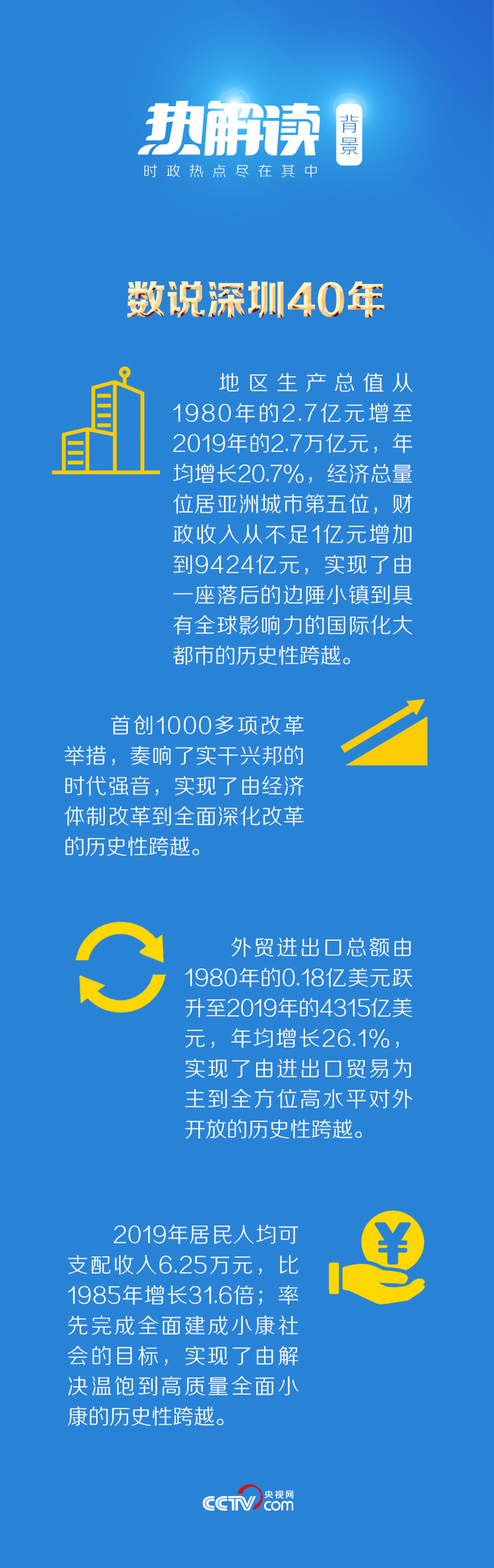 深圳從體制機制入手,推動經(jīng)濟發(fā)展質量變革、效率變革、動力變革,經(jīng)濟結構不斷優(yōu)化;前海蛇口自貿片區(qū)平均3天推出一項制度創(chuàng)新成果,作為深港合作橋頭堡的功能更加凸顯;作為粵港澳大灣區(qū)的核心引擎,深圳在科技創(chuàng)新、基礎設施聯(lián)通、深港澳合作、重大平臺建設等方面先行示范,為粵港澳大灣區(qū)建設提供澎湃動力……