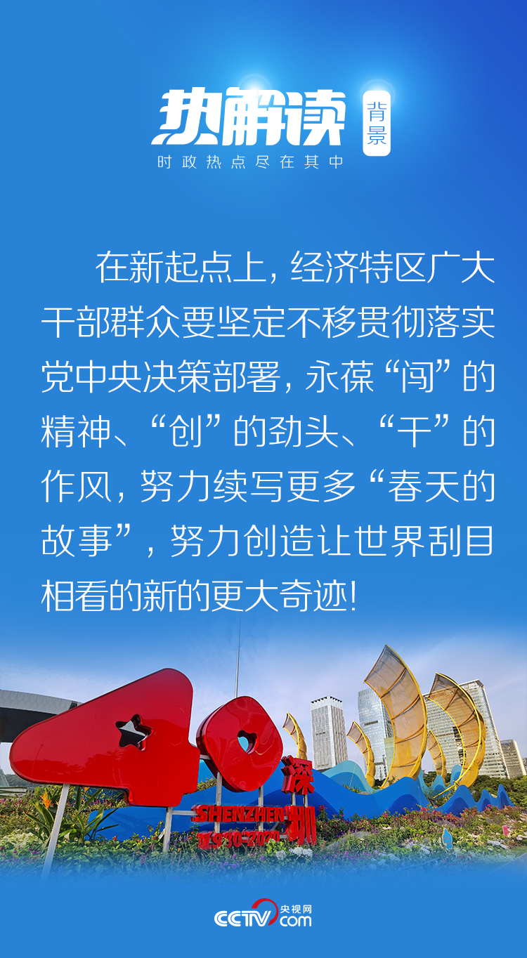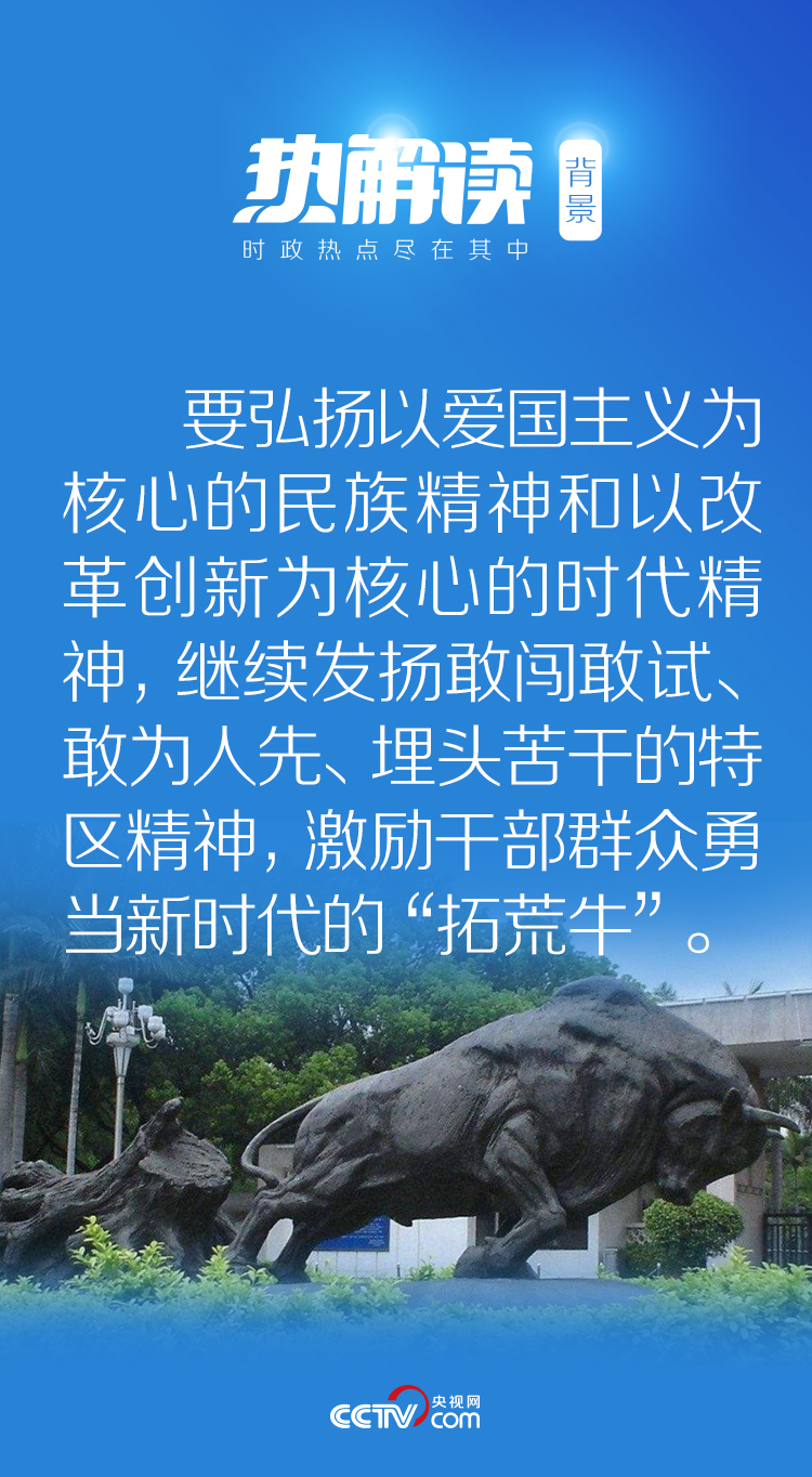 對于經(jīng)濟特區(qū)干部群眾如何續(xù)寫更多“春天的故事”,總書記給出三個字——“闖”“創(chuàng)”“干”。這三個字也正契合了敢闖敢試、敢為人先、埋頭苦干的特區(qū)精神。
