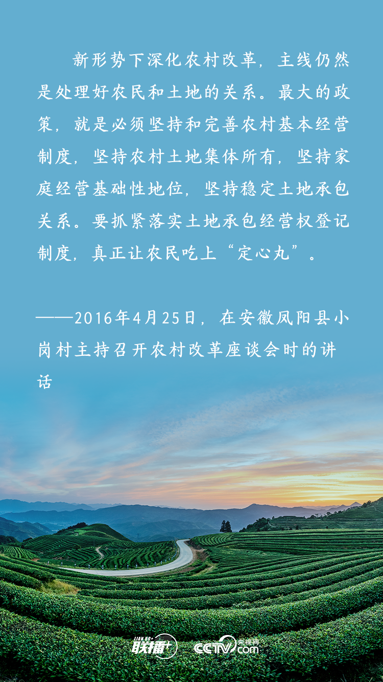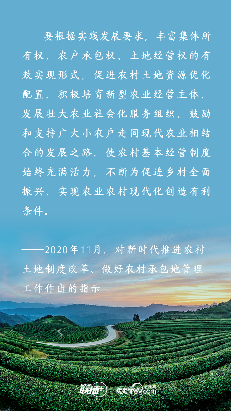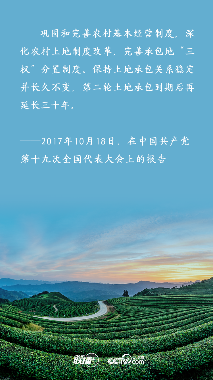 農(nóng)業(yè)農(nóng)村農(nóng)民問題是關(guān)系國計民生的根本性問題,農(nóng)村土地延包事關(guān)千家萬戶農(nóng)民切身利益,事關(guān)廣大農(nóng)村地區(qū)穩(wěn)定發(fā)展大計。黨的十八大以來,習(xí)近平總書記多次深入基層實地調(diào)研,召開多個重要會議,既從大處著眼,整體布局、謀定而動,又從小處入手,順勢而為、層層推進,為新時代推進農(nóng)村土地制度改革、做好農(nóng)村承包地管理工作擘畫發(fā)展路徑。央視網(wǎng)《聯(lián)播+》特梳理,與您一起學(xué)習(xí)。