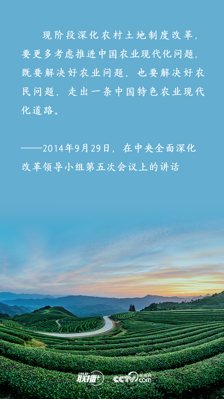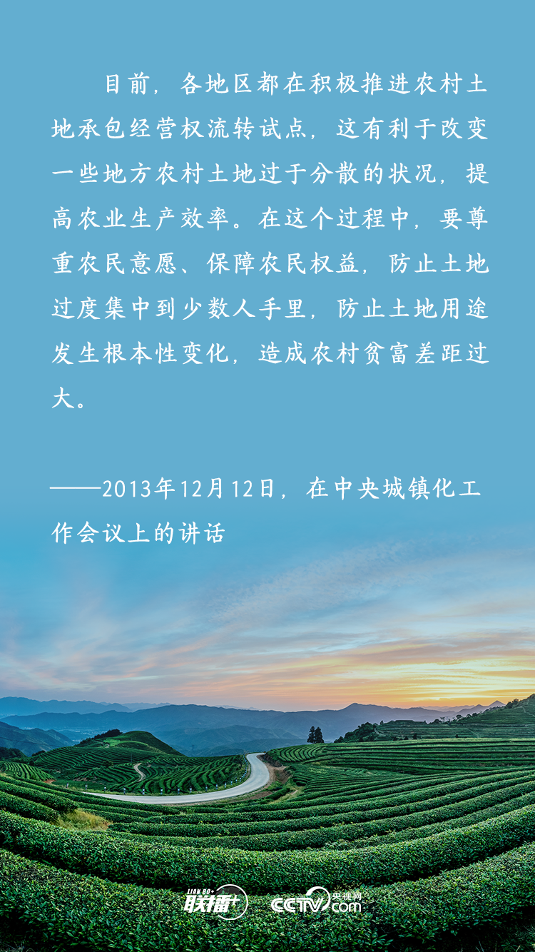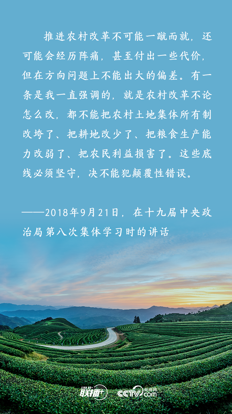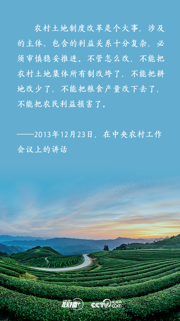 農(nóng)業(yè)農(nóng)村農(nóng)民問題是關(guān)系國計民生的根本性問題,農(nóng)村土地延包事關(guān)千家萬戶農(nóng)民切身利益,事關(guān)廣大農(nóng)村地區(qū)穩(wěn)定發(fā)展大計。黨的十八大以來,習(xí)近平總書記多次深入基層實地調(diào)研,召開多個重要會議,既從大處著眼,整體布局、謀定而動,又從小處入手,順勢而為、層層推進,為新時代推進農(nóng)村土地制度改革、做好農(nóng)村承包地管理工作擘畫發(fā)展路徑。央視網(wǎng)《聯(lián)播+》特梳理,與您一起學(xué)習(xí)。