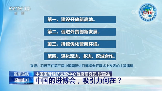 在新冠肺炎疫情全球蔓延、世界經(jīng)濟(jì)持續(xù)低迷的背景下,第三屆中國國際進(jìn)口博覽會今晚在上海開幕。新朋友、老朋友共赴“東方之約”,當(dāng)中國開放的大門越來越大,攜手共進(jìn)、合作共贏,進(jìn)博會這個平臺又將怎樣發(fā)揮作用?《新聞1+1》今日連線中國國際經(jīng)濟(jì)交流中心首席研究員張燕生,共同關(guān)注:中國的進(jìn)博會,吸引力何在?