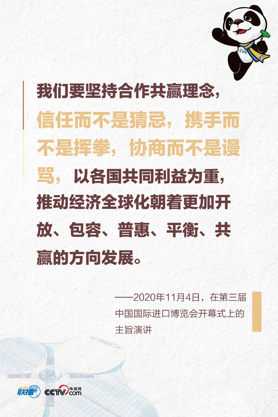 “要堅(jiān)持合作共贏理念,信任而不是猜忌,攜手而不是揮拳,協(xié)商而不是謾罵,以各國(guó)共同利益為重,推動(dòng)經(jīng)濟(jì)全球化朝著更加開放、包容、普惠、平衡、共贏的方向發(fā)展”,“各國(guó)走向開放、走向合作的大勢(shì)沒(méi)有改變”。