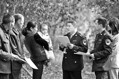安徽省肥西縣司法局紫蓬司法所王崗(右三)和同事在紫蓬鎮(zhèn)長(zhǎng)劉社區(qū)開(kāi)展法律咨詢宣傳服務(wù)。新華社發(fā)