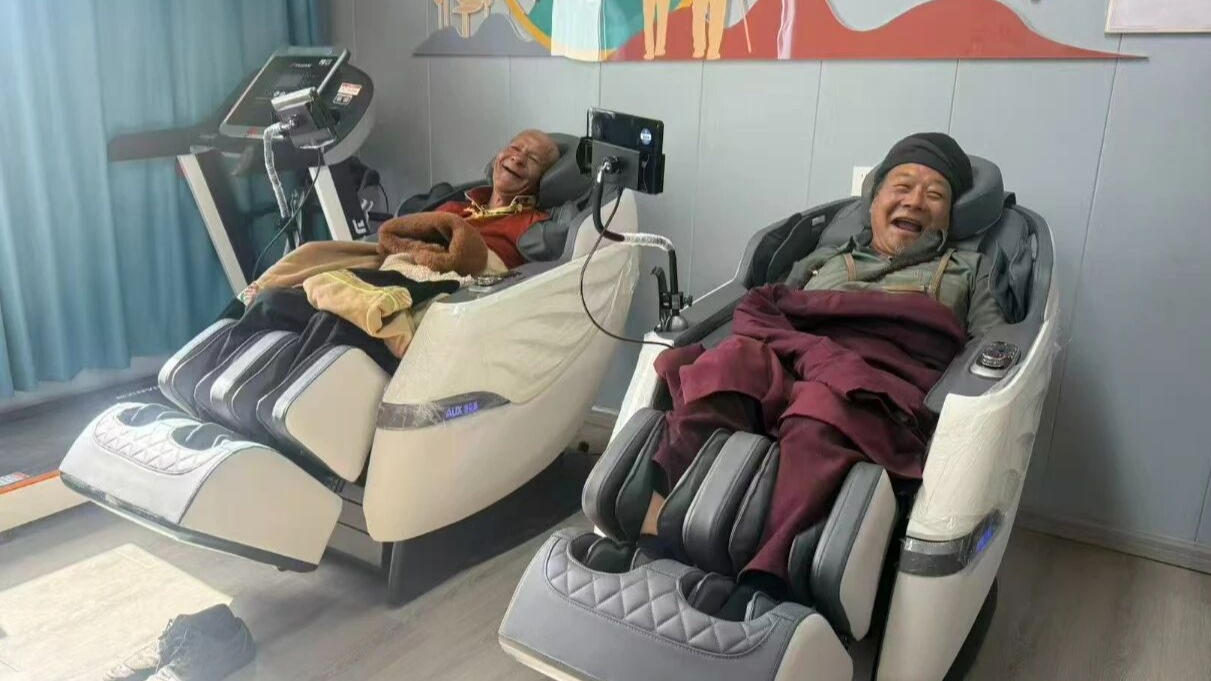 一張張老人們下棋娛樂的照片,一個個按摩椅,還有廚房里微波爐、蒸鍋,整齊的碗筷……勾勒出一幅晚年生活的美麗畫卷。