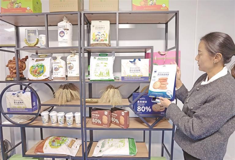 尖扎縣鄉(xiāng)村振興產(chǎn)業(yè)園區(qū),托崗食品有限公司的生產(chǎn)線正將黑青稞轉(zhuǎn)化為低糖高纖維的明星單品。車間里,金黃的面團經(jīng)過現(xiàn)代工藝烘焙,既保留了青稞原有的膳食纖維與營養(yǎng),又融入了酥脆口感。包裝線上,一袋袋青稞餅干即將帶著高原的味道走向全國。