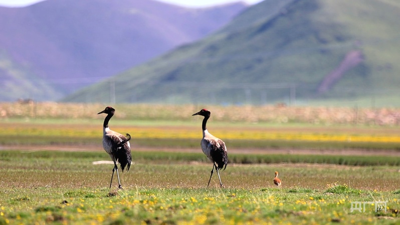 黑頸鶴寶寶濕地學(xué)步 黃河岸邊“鶴”家歡