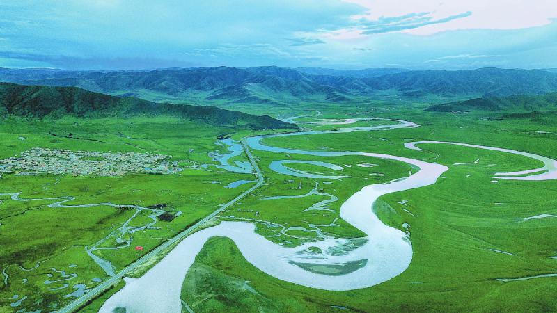 7月24日,阿壩州紅原縣哈拉瑪村,嘎曲河在草原上劃出一道道舒緩優(yōu)美的弧線。近年來隨著生態(tài)保護(hù)項目大力實施,草原濕地生態(tài)逐年改善。 本報記者 何海洋 攝