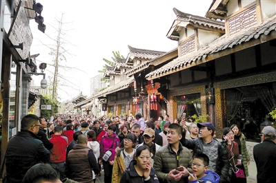 寬窄巷子游人如織 本報(bào)實(shí)習(xí)記者 張青青 攝