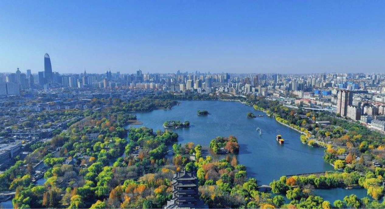 寒潮天氣吹來“泉城藍” 大明湖畔水天一色