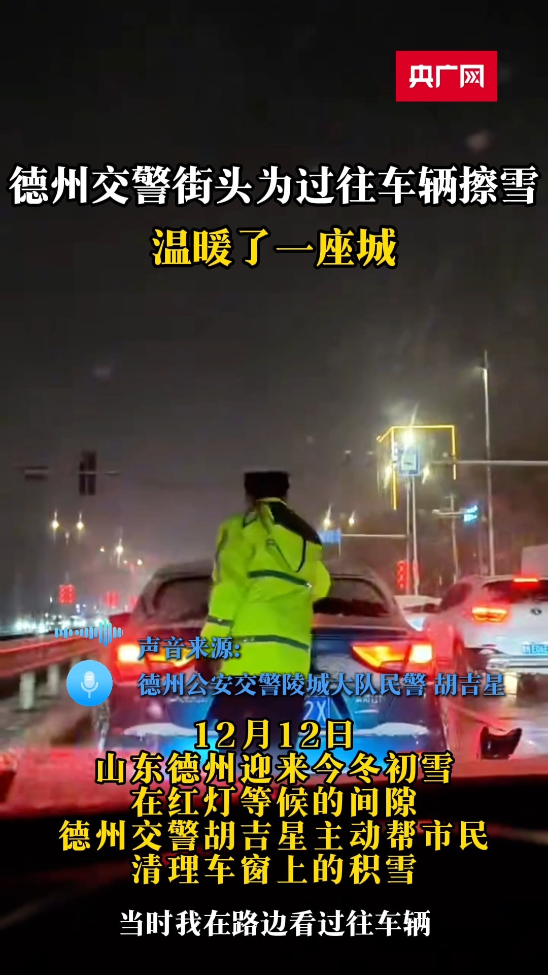 德州交警街頭為過往車輛擦雪,溫暖了一座城