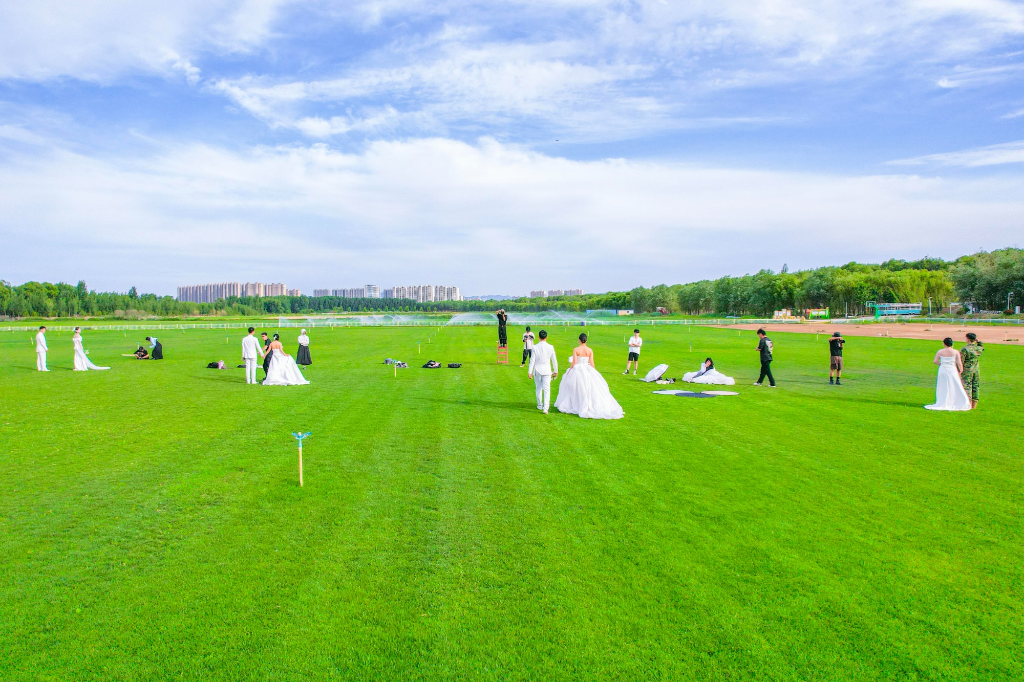 作品簡介:新人們身著婚紗禮服在濟(jì)南黃河岸邊的生態(tài)草坪上拍攝婚紗照,翠綠如茵的草地與藍(lán)天白云相映成趣,遠(yuǎn)處是錯(cuò)落的現(xiàn)代建筑與蔥郁林木。(來源:山東省生態(tài)環(huán)境廳)